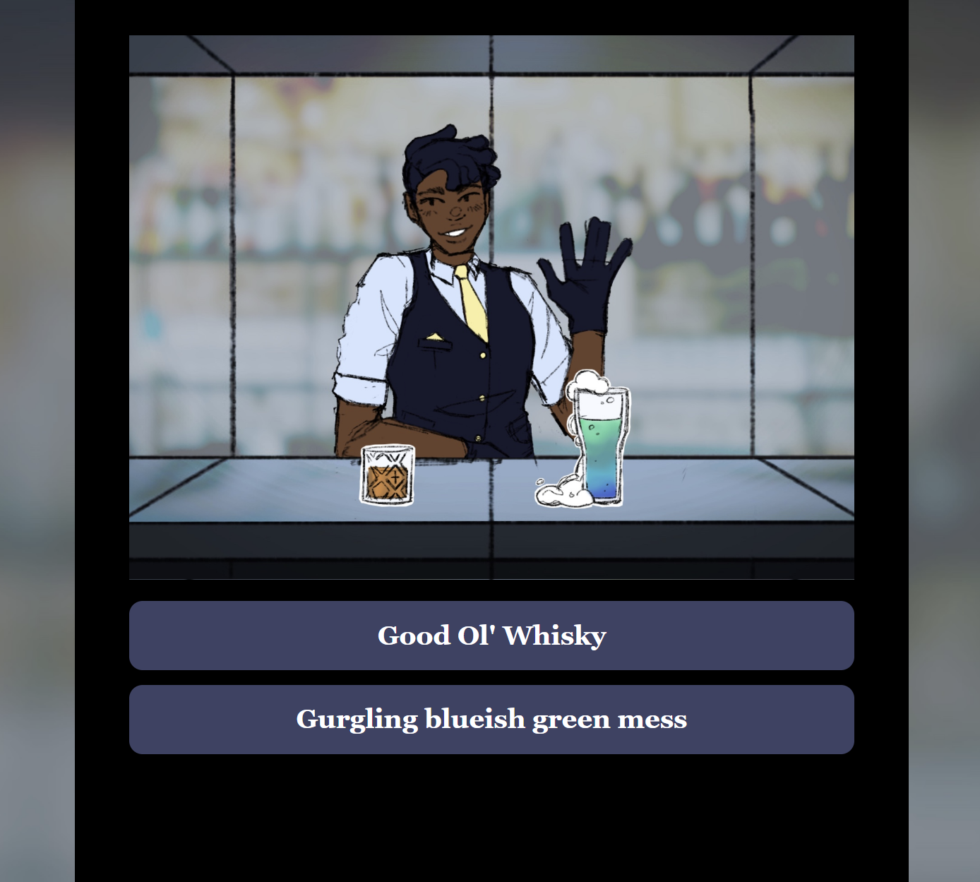 Pick Your Poison is a text adventure where you try your best not to die. Each day you'll be given a choice between a selection of drinks, using clues from the narrator and the environment you must traverse your way to the end.